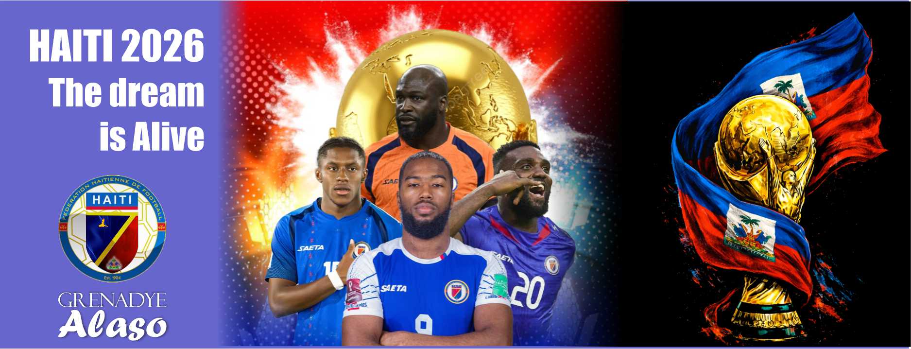 Kado Souvni 2026 Balon ADIDAS Officiel FIFA ki gen lis tout jwe ki pral reprensete Ayiti pou FIFA 2026. Se yon Sipò Pou Grenadye. Si Haiti Ta pran Koup Mondyal 2026, Sipò pou ekspozisyon, pedestal
