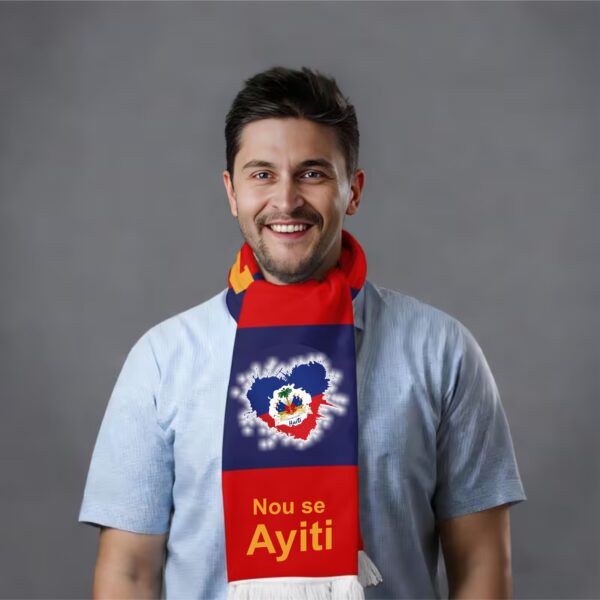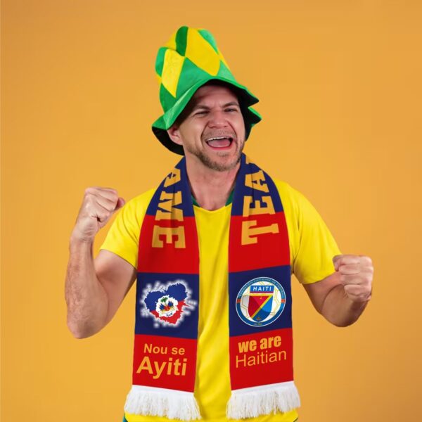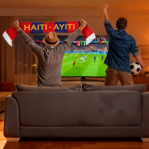 Montre fyète w pou AYTTI ak foula foutbòl koup di mond sa a ki fonse. Avèk yon desen foula drapo Ayisyen byen vivan ki enprime byen klè sou tou de bò yo, se kado koup di mond pafè pou fanatik k ap ankouraje pandan koup di mond lan, epi sitou pou koup di mond foutbòl 2026 la.