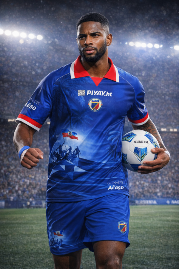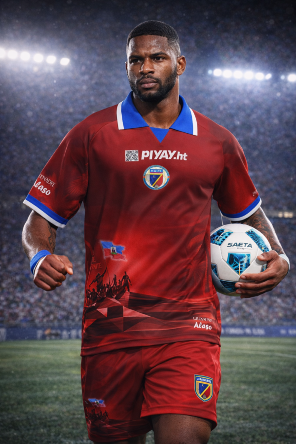 Avèk logo PIYAY.ht, koulè nasyonal yo, ak detay ki enspire pa listwa ak libète, li pa sèlman yon jersey — li se yon deklarasyon.