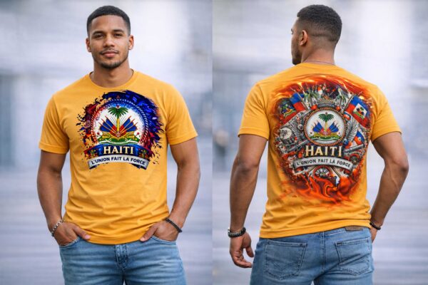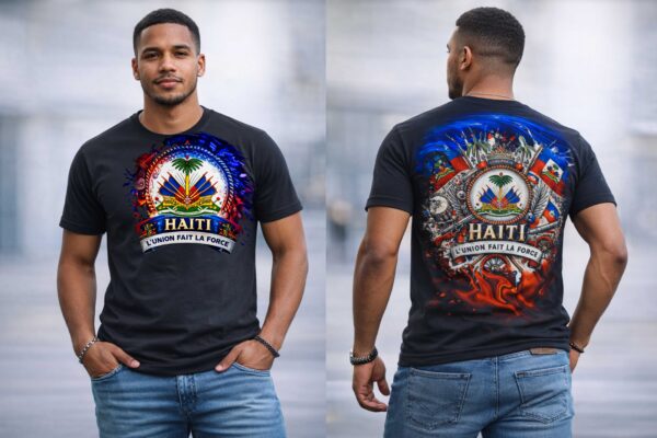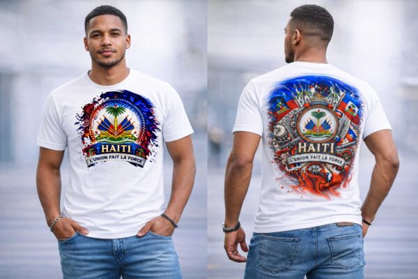 This premium white Haitian graphic t-shirt is more than just clothing — it’s a symbol of strength, unity, and culture. Featuring the iconic Haiti coat of arms with the powerful message “L’Union Fait La Force”, this design celebrates the spirit of freedom and resilience.
