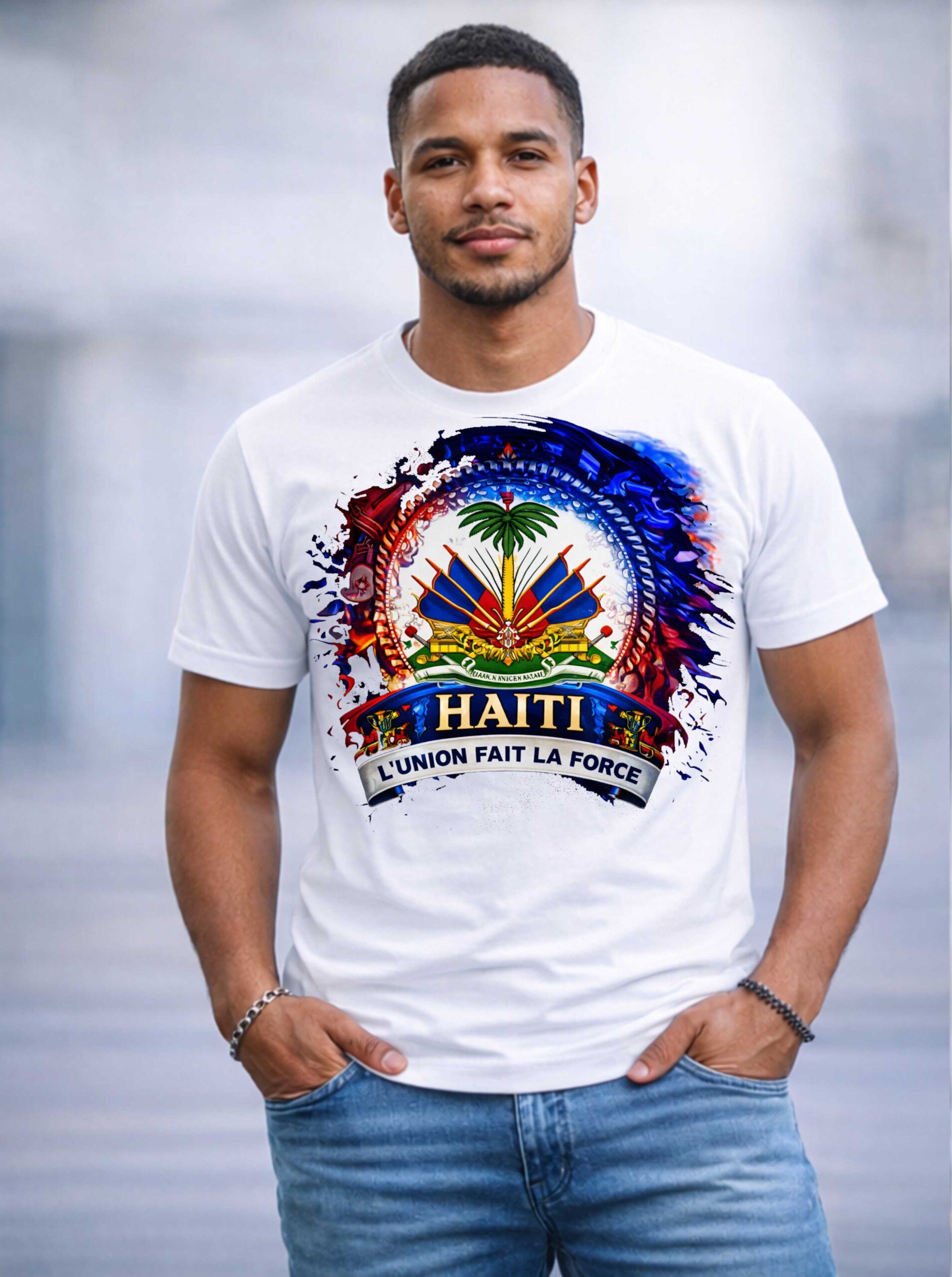 This premium white Haitian graphic t-shirt is more than just clothing — it’s a symbol of strength, unity, and culture. Featuring the iconic Haiti coat of arms with the powerful message “L’Union Fait La Force”, this design celebrates the spirit of freedom and resilience.