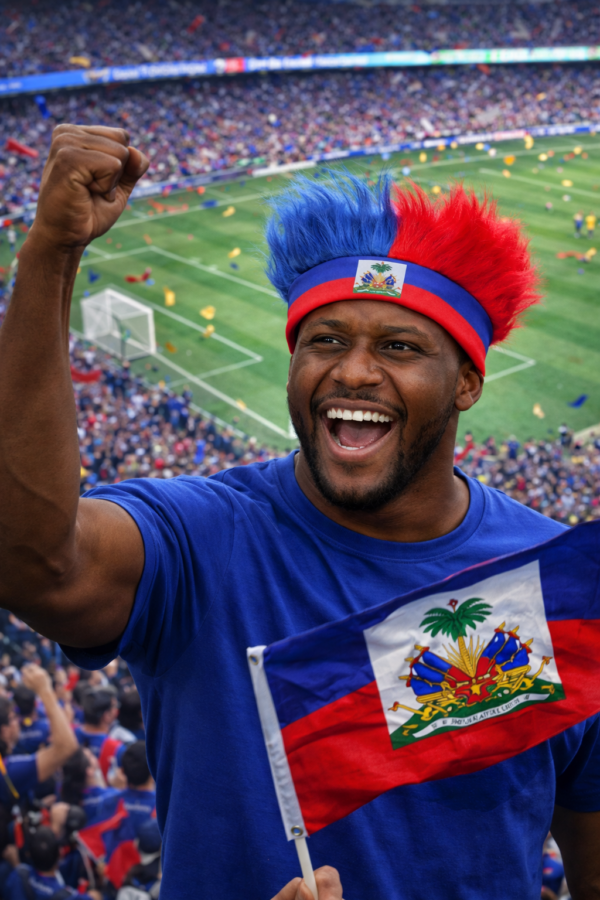 [Montre fyète Ayisyen ou] Prepare w pou selebre ak bann tèt fou ble e wouj inik sa a – pafè pou evènman espòtif, lespri nasyonal, match Ekip Ayiti oswa selebrasyon 18 Mai.